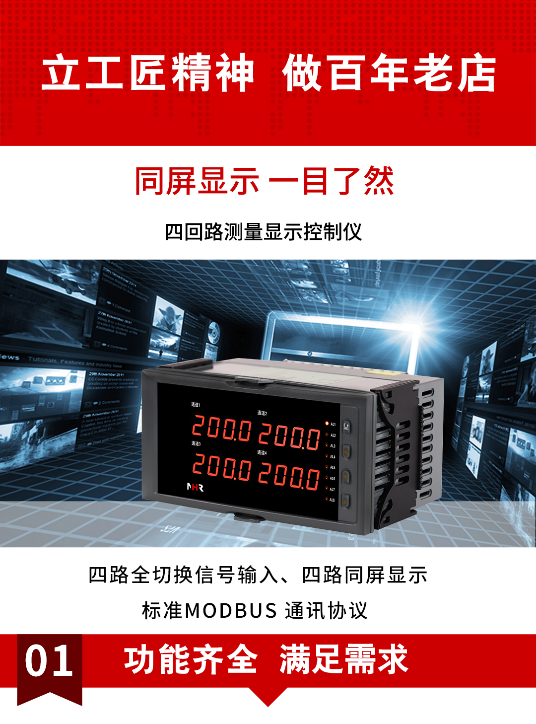 虹潤公司是專業(yè)生產(chǎn)多路溫度巡檢儀的國家專精特新“小巨人”企業(yè),生產(chǎn)的四回路測量顯示控制儀,具有四路同屏顯示,全切換信號輸入,數(shù)學(xué)運算功能,多種輸出類型,RS485/RS232通訊等特點。產(chǎn)品獲得巡回檢測顯示方法及裝置、儀表殼體等2項國家發(fā)明專利,主持起草工業(yè)過程控制系統(tǒng)用模擬輸入兩位或多位輸出儀表、物聯(lián)網(wǎng)智能溫度儀表通用技術(shù)條件等2項國家標(biāo)準(zhǔn),以及通信系統(tǒng)多通道數(shù)據(jù)采集控制終端規(guī)范軍用標(biāo)準(zhǔn),參與國際5G標(biāo)準(zhǔn)制定,取得四回路測量顯示控制儀等3項相關(guān)軟件著作權(quán)。產(chǎn)品廣泛應(yīng)用于電力、石化、冶金、制藥、水處理、機械配套等各種工業(yè)現(xiàn)場。