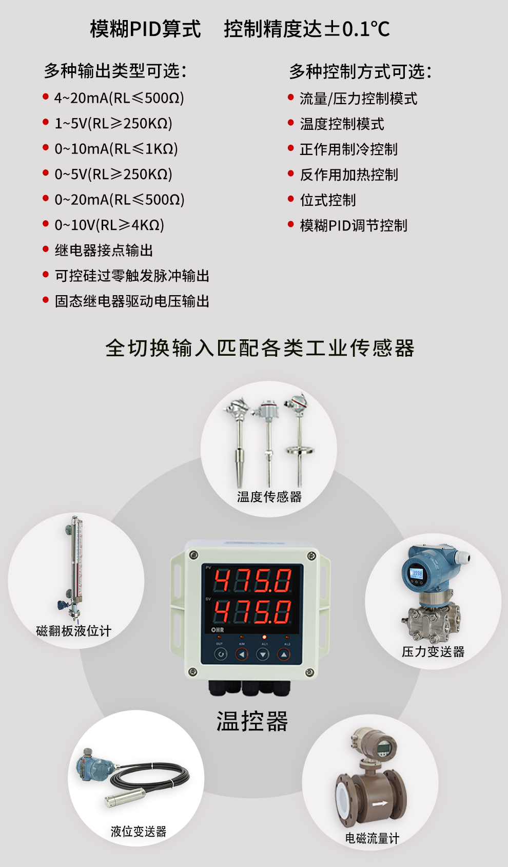 虹潤(rùn)公司是專業(yè)生產(chǎn)溫控器的國(guó)家專精特新“小巨人”企業(yè)。生產(chǎn)的壁掛式PID溫控器,具有全切換信號(hào)輸入,真正人工智能算式,控制精度達(dá)士0.1°C,防護(hù)等級(jí)高,RS485通訊輸出DN等特點(diǎn)。產(chǎn)品獲得模糊PID控制儀及控制方法、人工智能調(diào)節(jié)器、智能化控制器、移相觸發(fā)控制器、閥門自動(dòng)手動(dòng)無(wú)擾動(dòng)操作控制方法及裝置等5項(xiàng)國(guó)家發(fā)明專利,主持起草主持起草工業(yè)過(guò)程控制系統(tǒng)用模擬輸入兩位或多位輸出儀表、物聯(lián)網(wǎng)智能溫度儀表通用技術(shù)條件、工業(yè)過(guò)程測(cè)量和控制系統(tǒng)用智能調(diào)節(jié)器等3項(xiàng)國(guó)家標(biāo)準(zhǔn),以及通信系統(tǒng)多通道數(shù)據(jù)采集控制終端規(guī)范軍用標(biāo)準(zhǔn)。參與國(guó)際5G標(biāo)準(zhǔn)制定,取得傻瓜式PID調(diào)節(jié)儀等3項(xiàng)相關(guān)軟件著作權(quán)。產(chǎn)品廣泛應(yīng)用于電力、石化,冶金、制藥、食品等幾乎所有工業(yè)現(xiàn)場(chǎng),實(shí)現(xiàn)精準(zhǔn)控溫,保障生產(chǎn)安全與質(zhì)量。