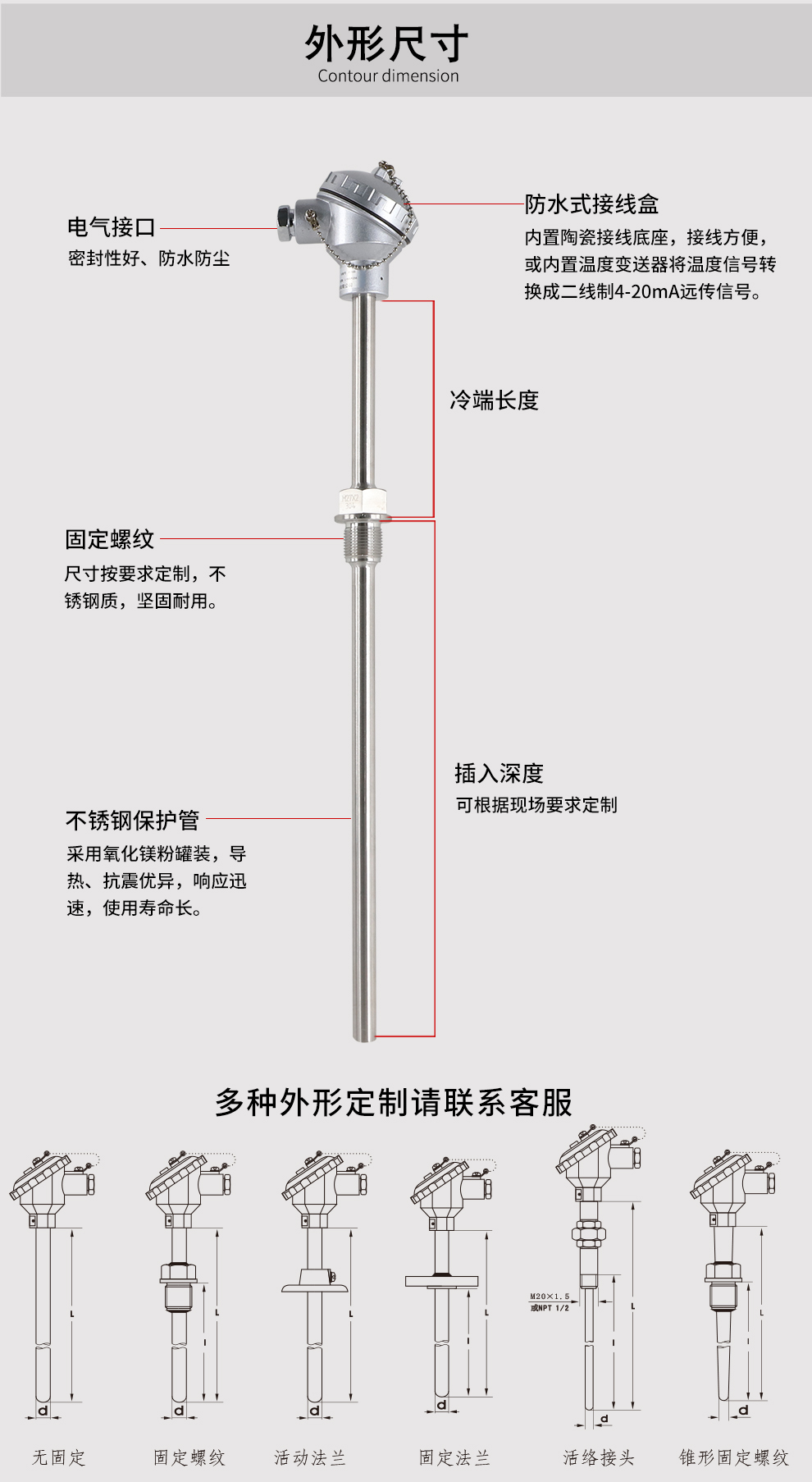 裝配式熱電阻熱電偶作為溫度測量傳感器,通常與溫度變送器、調(diào)節(jié)器及顯示儀表等配套使用,組成過程控制系統(tǒng),用以直接測量或控制各種生產(chǎn)過程中流體、蒸汽和氣體介質(zhì)以及固體表面等溫度。