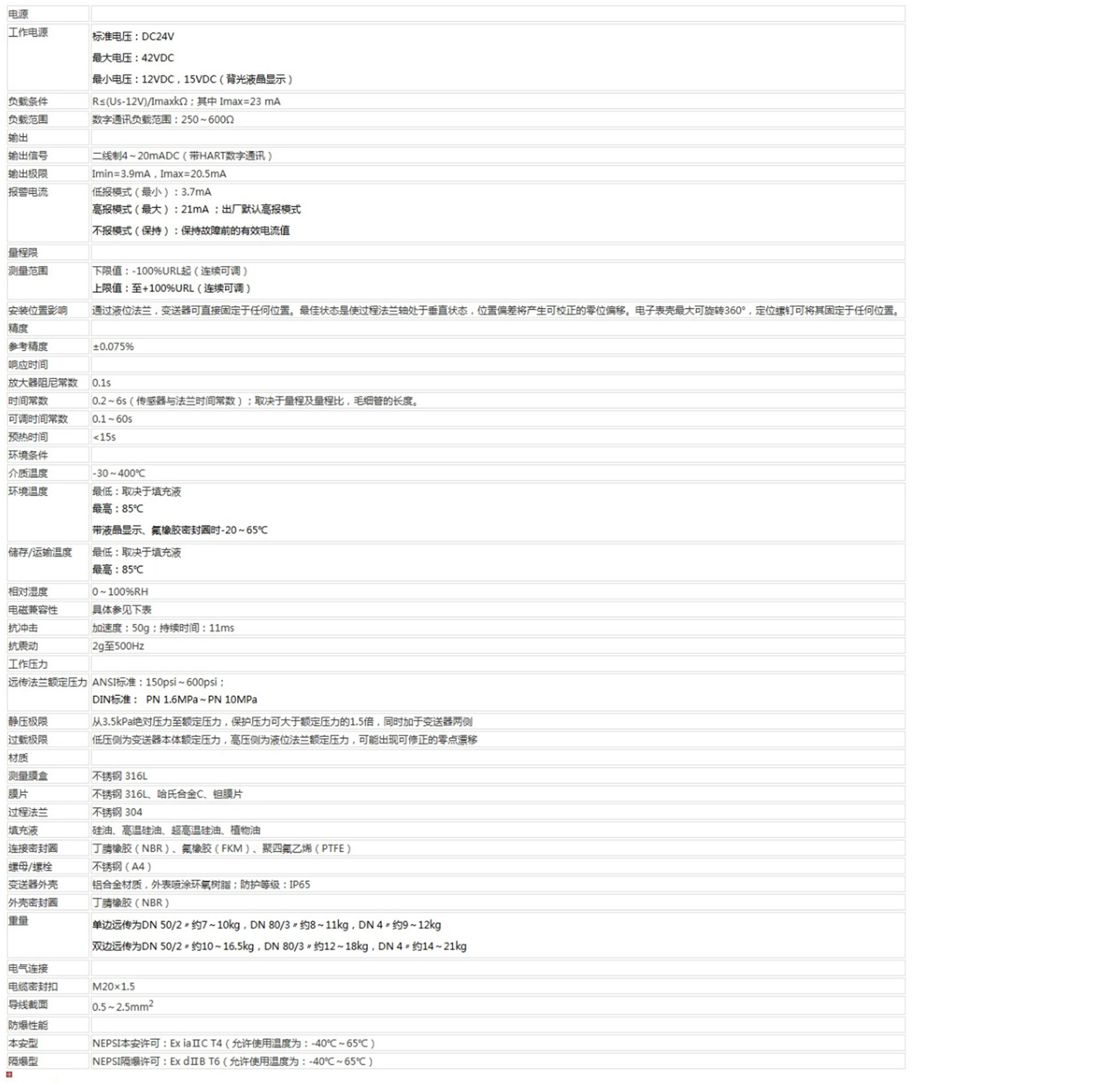 該產品用于測量液體、氣體或蒸汽的液位、密度、壓力,將其轉變成4~20mA (HART)電流輸出信號,可通過RST375手持終端對它們進行參數設定、過程監(jiān)控等。測量范圍(未遷移時)為0-1kPa~2MPa,液位法蘭的額定壓力分別為:1.6/4MPa、6.4MPa、10MPa、150psi、300psi或600psi。