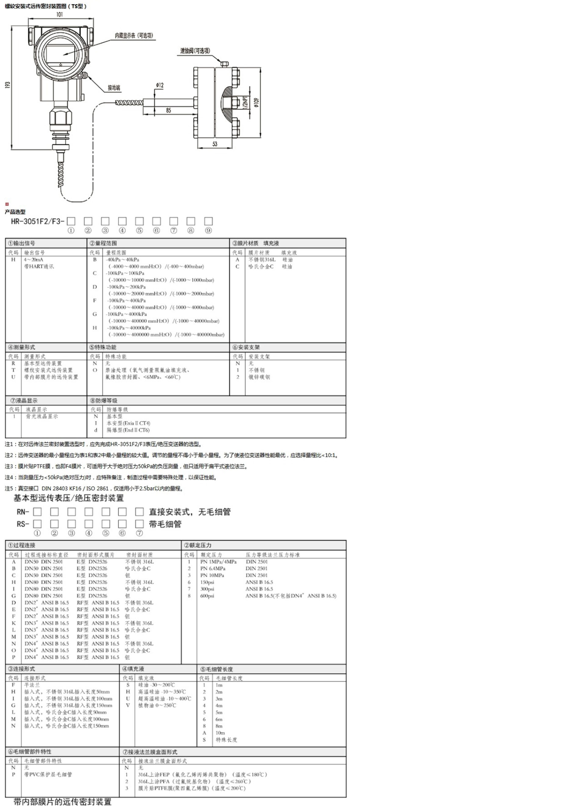 HR-3051F2/F3系列高精度遠(yuǎn)傳表壓/絕壓變送器